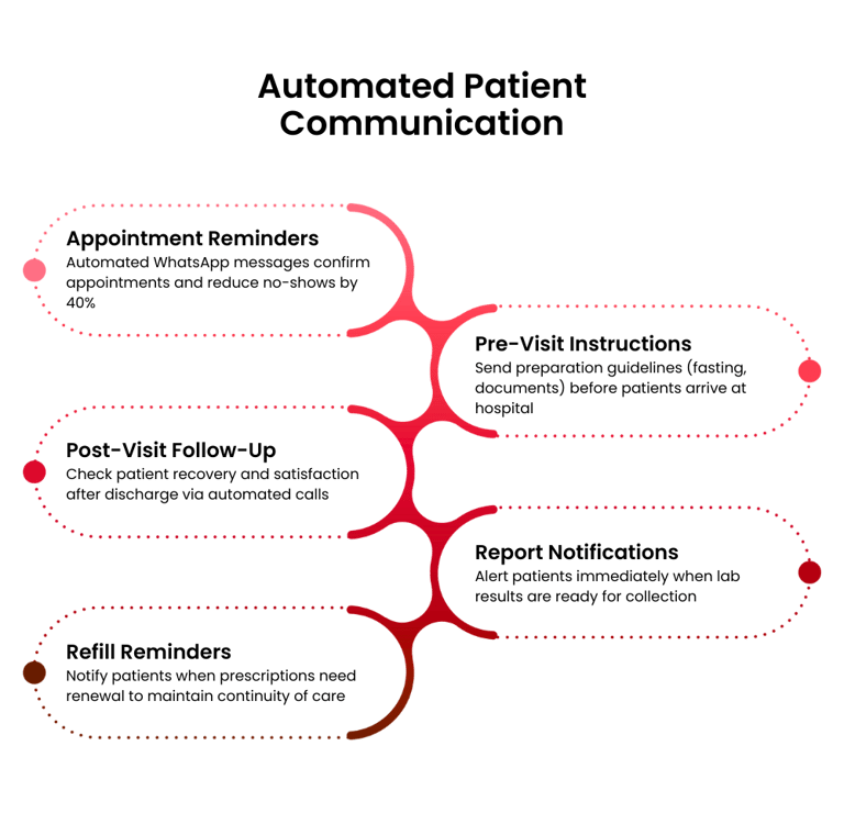 Front desk staff calling patients one by one to confirm appointments, remind about medications, or schedule follow-ups. Hours wasted daily.