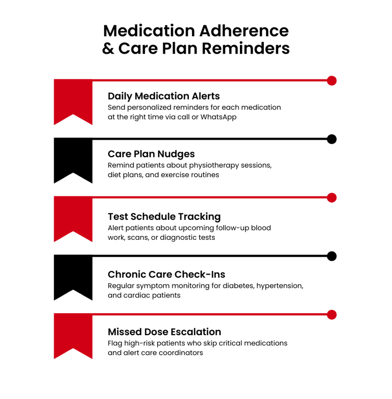 Most patients don't follow medication schedules or care plans after discharge. AI sends automated reminders so they stay compliant.