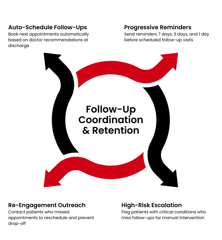 Patients who don't return for follow-ups often end up in emergencies or switch hospitals. AI ensures they come back.