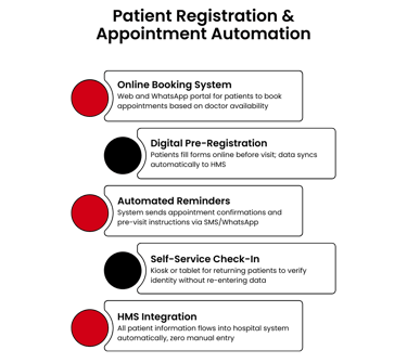 We deploy online booking and digital registration so patients don't wait in line and front desk workload drops dramatically.