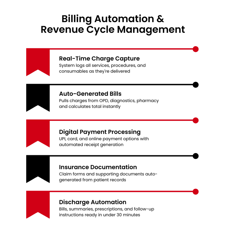 Registration queue backs up every morning. Pharmacy waits for billing clearance. Discharge takes 4 hours because of paperwork handoffs.